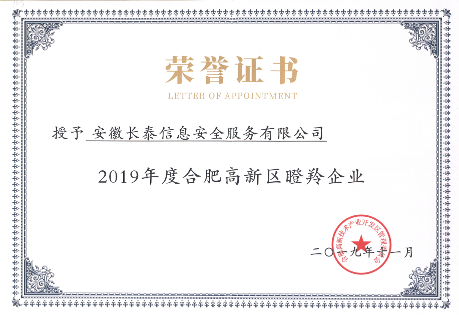 2019年,11月20日,合肥高新区2019年高成长企业榜单正式发布,高新区共认定了502家高成长企业,其中雏鹰企业275家、瞪羚培育企业72家、瞪羚企业149家、潜在独角兽企业3家、独角兽企业1家、平台型龙头企业2家。作为其中的高科技企业——安徽半岛·网站在线登入官网-半岛(中国)成功入选瞪羚企业榜单。
